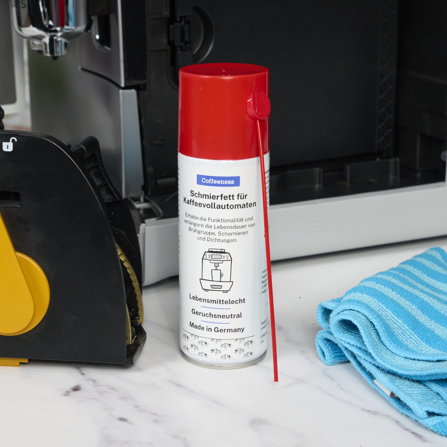 | Kompatibilität | Mit allen Kaffeevollautomaten, Espressomaschinen, Kaffeemaschinen und Küchenmaschinen mit beweglichen Teilen. |